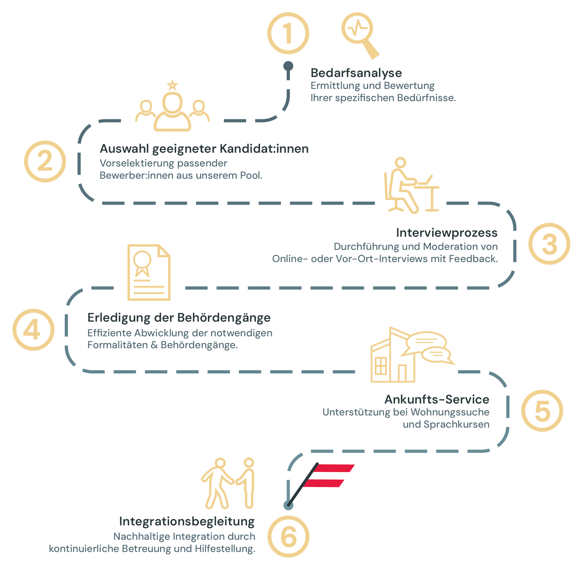 Mit uns gelangen Sie in 6 Schritten zu qualifizierten Fachkräften.